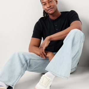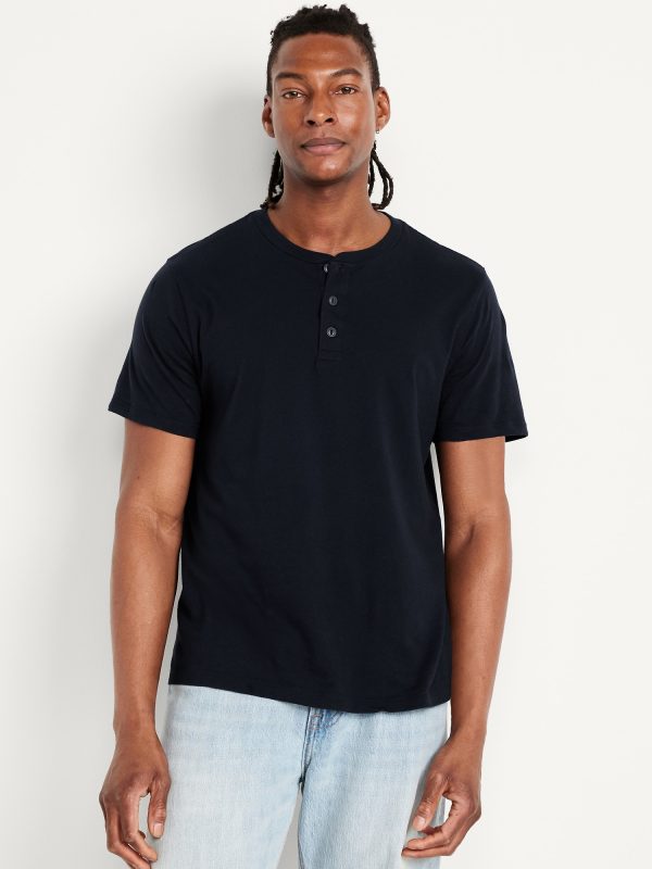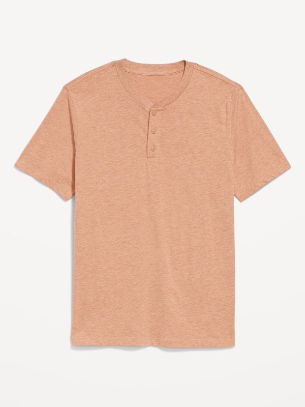 Henley T-Shirt: rib-knit crew neck, short sleeves, three-button henley placket, #687868