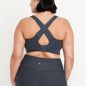 High Support PowerSoft Sports Bra: Featuring PowerSoft. Light compression meets a peachy-smooth, sweat-wicking fabric.v-neck, adjustable cross-back straps, back hook-and-eye closure, molded cups, go-dry wicks moisture, #559448