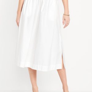 High-Waisted A-Line Midi Skirt: high elasticized waistband, side-seam pockets, striped print, #766934