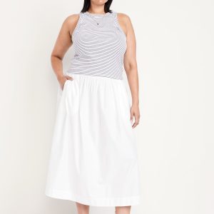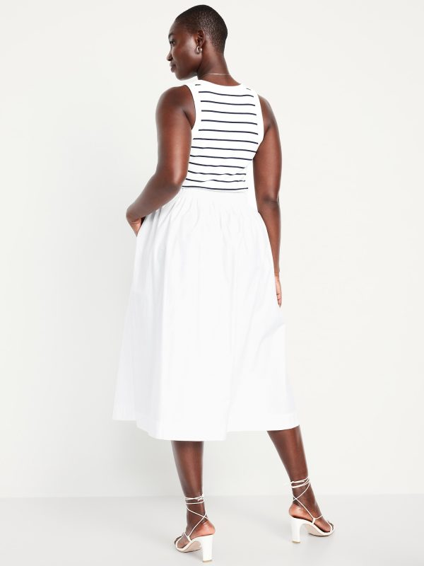 High-Waisted A-Line Midi Skirt: high elasticized waistband, side-seam pockets, striped print, #766934