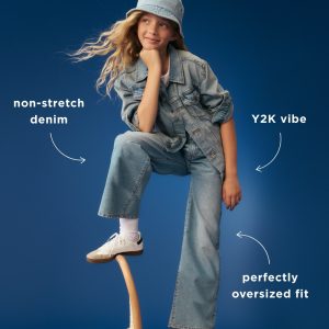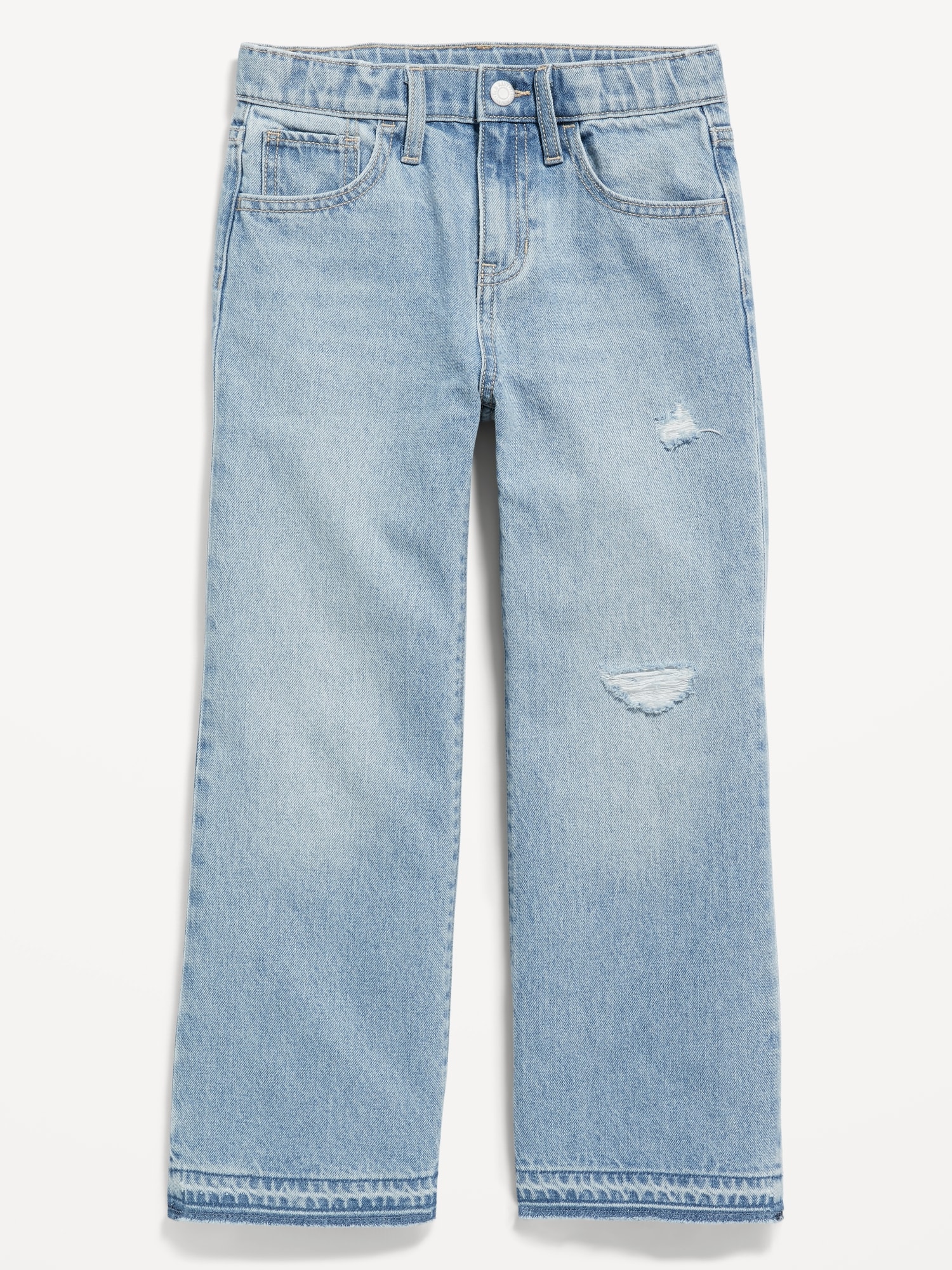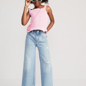 High-Waisted Baggy Ripped Wide-Leg Jeans for Girls: The it fits she really, really wants.interior adjustable waistband, snap button closure (sizes 5-8), regular button closure (sizes 10-20), zip fly, scoop pockets and coin pocket, patch pockets at back, wide leg opening, #803677