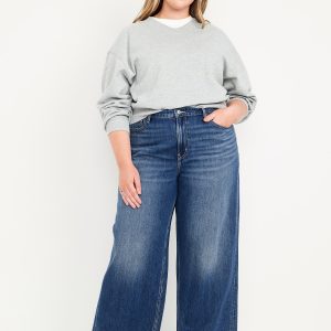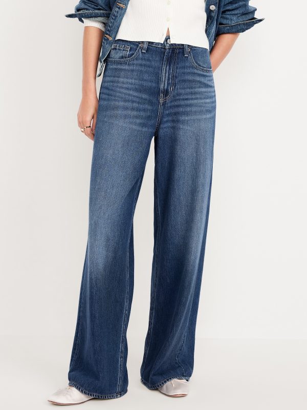 High-Waisted Baggy Wide-Leg Jeans: The oversized wide-leg jean of your teenage dreams.studded accent at sides, high waist, zip fly, #800683