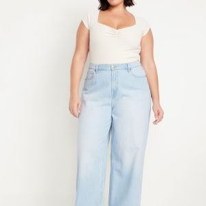 High-Waisted Baggy Wide-Leg Jeans: The oversized wide-leg jean of your teenage dreams.studded accent at sides, high waist, zip fly, #800683