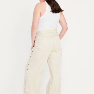 High-Waisted Baggy Wide-Leg Studded Jeans