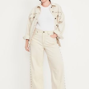 High-Waisted Baggy Wide-Leg Studded Jeans