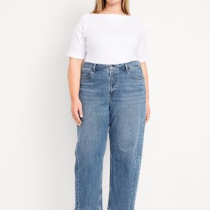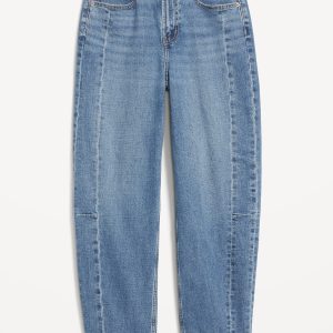 High-Waisted Barrel Ankle Jeans: A curved, tapered leg and proportion play from hip to hem.high waisted, zip fly, seamed barrel leg, #804566