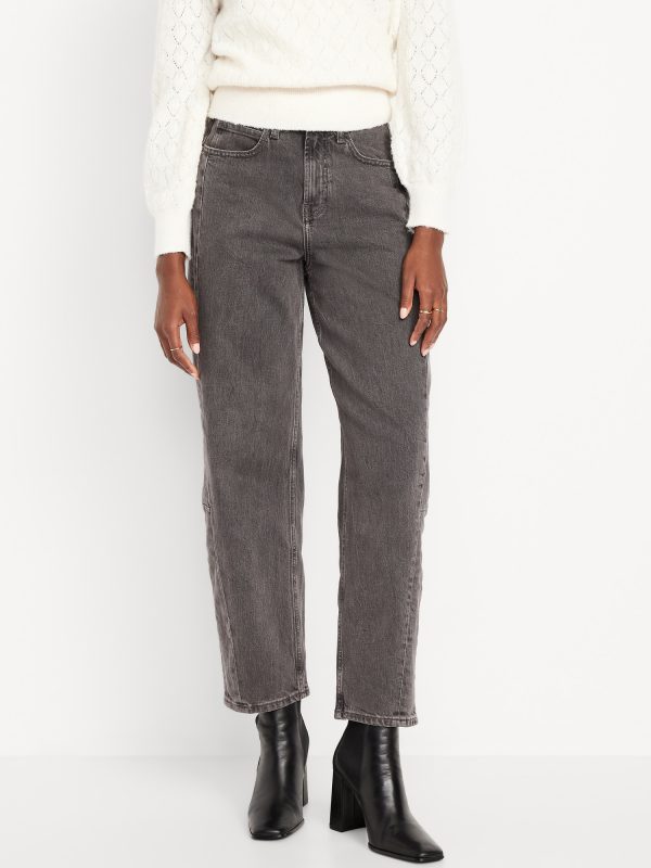High-Waisted Barrel Ankle Jeans: A curved, tapered leg and proportion play from hip to hem.high waisted, zip fly, seamed barrel leg, #804566