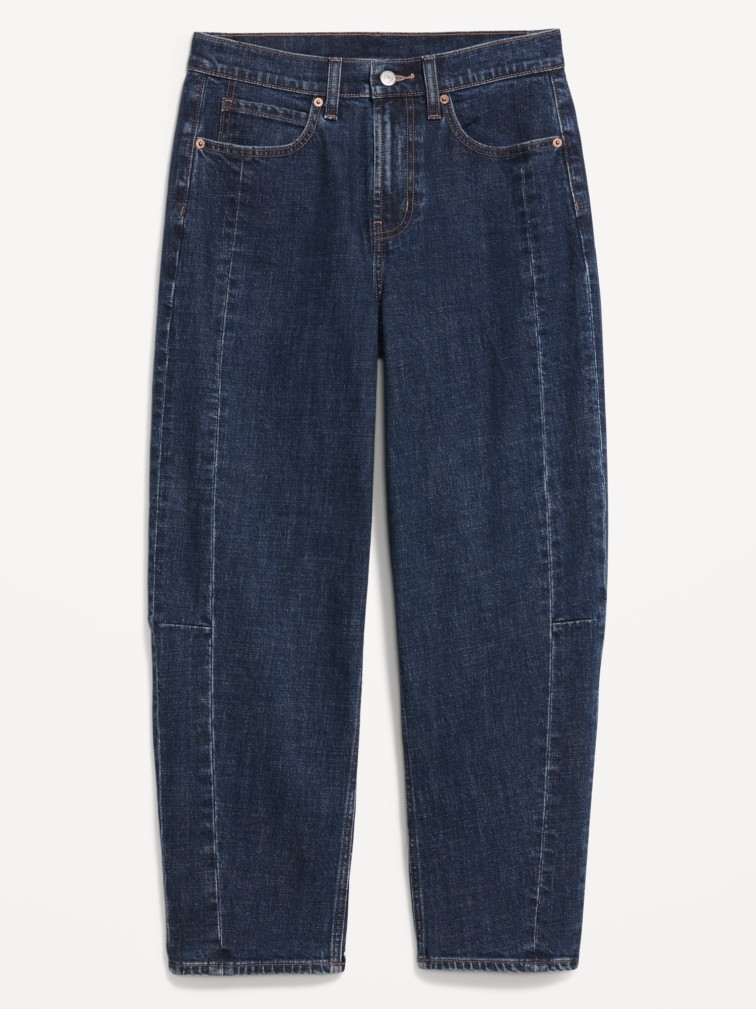 High-Waisted Barrel Ankle Jeans: A curved, tapered leg and proportion play from hip to hem.high waisted, zip fly, seamed barrel leg, #804566
