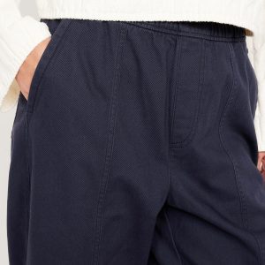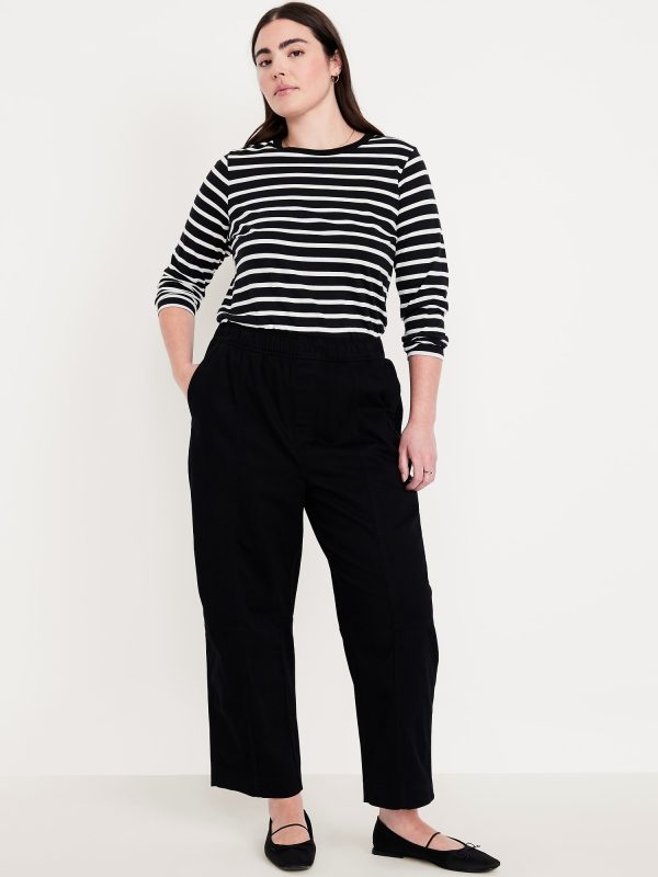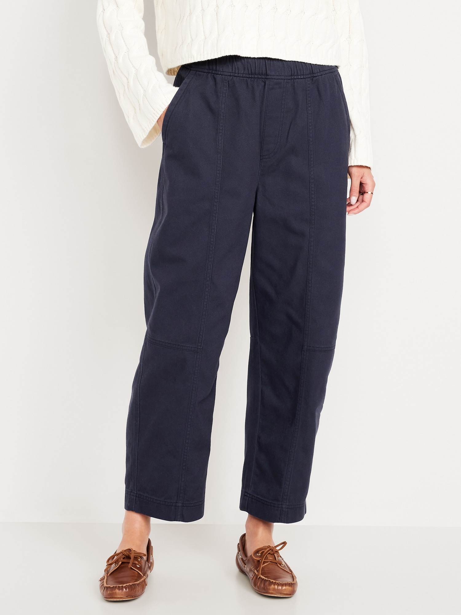 High-Waisted Barrel Ankle Pants: The effortless curved shape that’s so hot right now.comfort-elastic pull-on waistband, diagonal front pockets, back patch pockets, darted knee, seamed leg, #801608