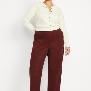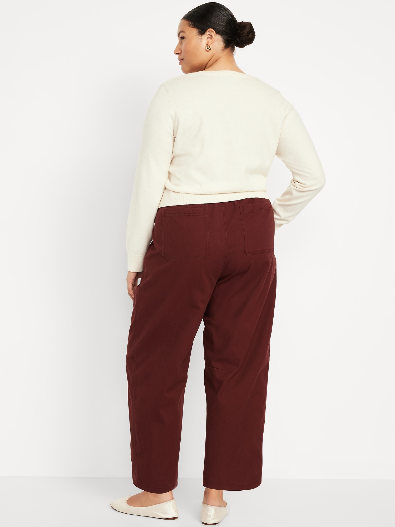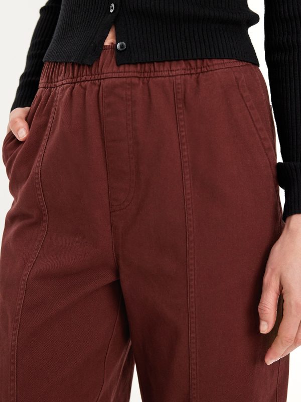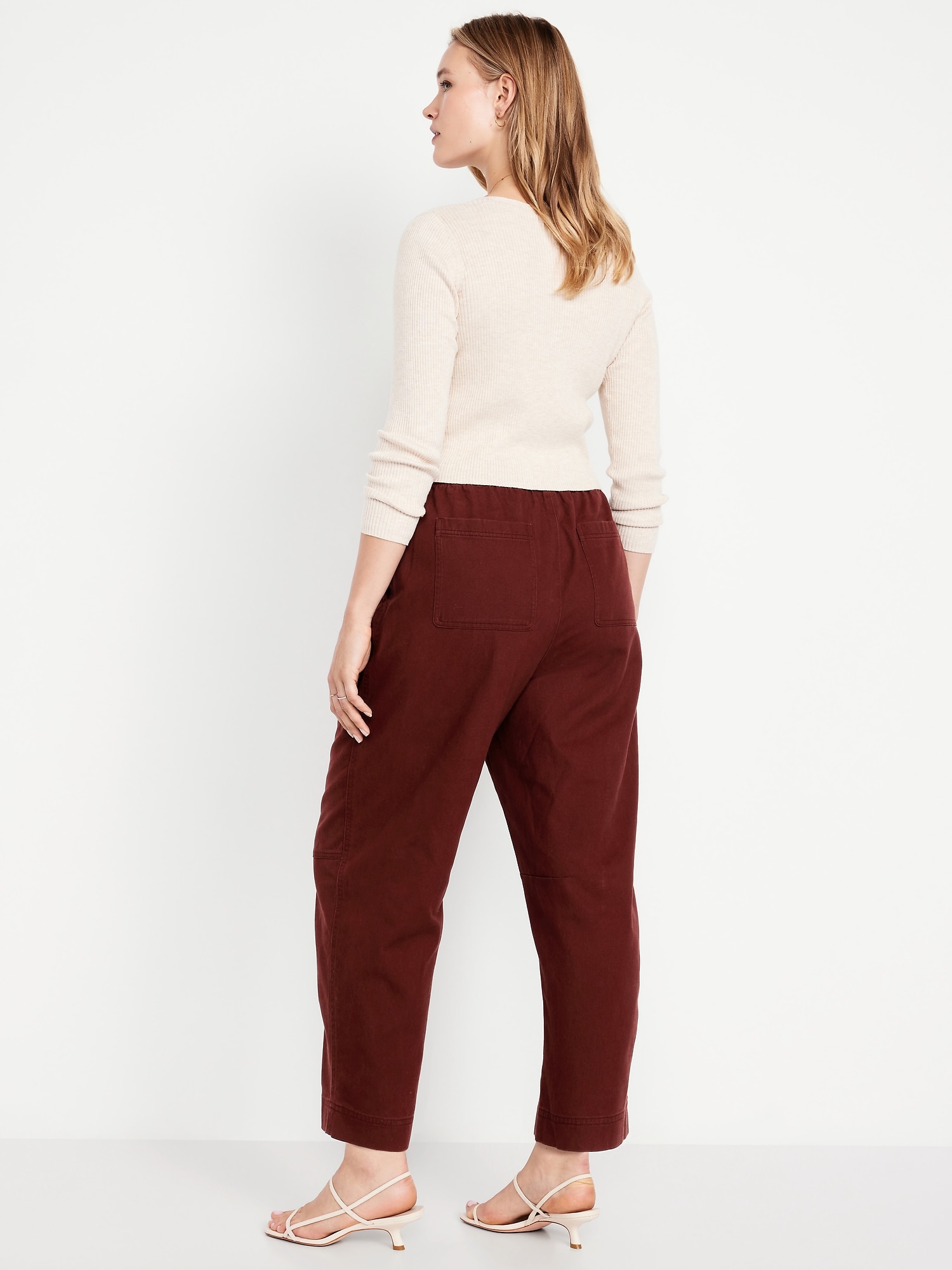 High-Waisted Barrel Ankle Pants: The effortless curved shape that’s so hot right now.comfort-elastic pull-on waistband, diagonal front pockets, back patch pockets, darted knee, seamed leg, #801608