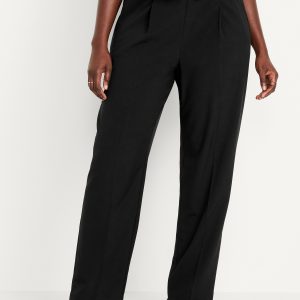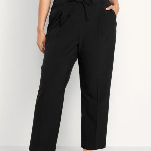 High-Waisted Billie Straight Ankle Trouser: A pleated pull-on pant for work and play.comfort elastic-drawstring waist, hip pockets, back right welt pocket, #799291