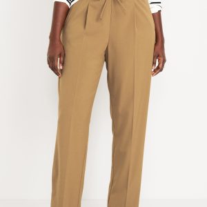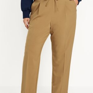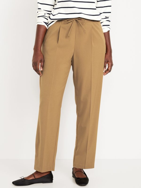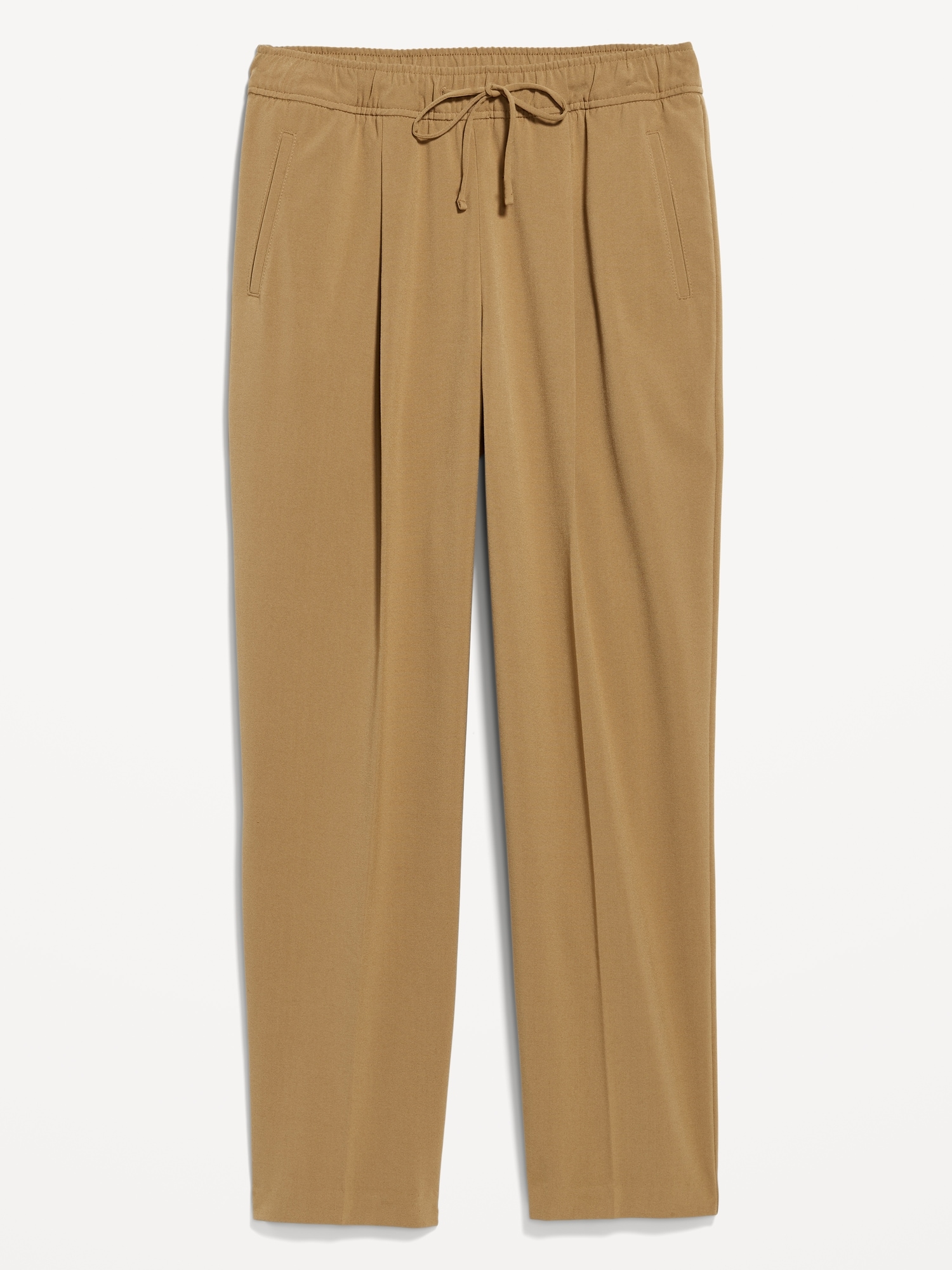 High-Waisted Billie Straight Ankle Trouser: A pleated pull-on pant for work and play.comfort elastic-drawstring waist, hip pockets, back right welt pocket, #799291