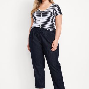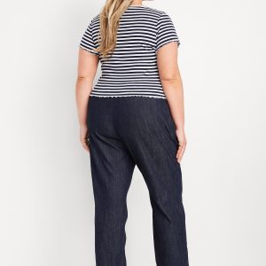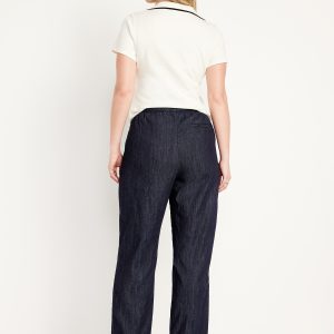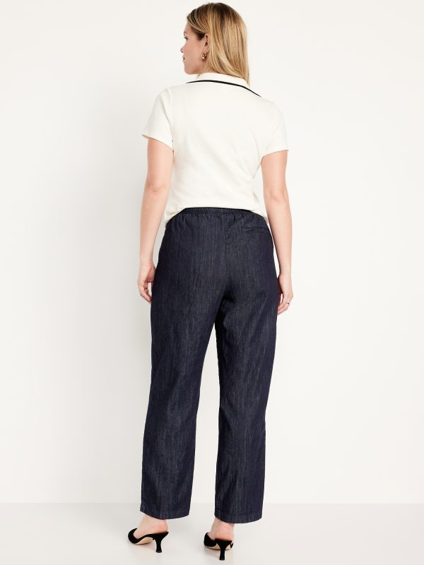 High-Waisted Billie Straight Ankle Trouser: A pleated pull-on pant for work and play.comfort elastic-drawstring waist, hip pockets, back right welt pocket, #799291