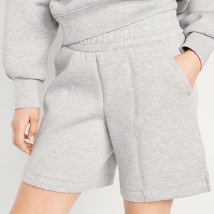 High-Waisted Bounce Fleece Shorts — 8-inch inseam: Featuring Bounce Fleece. A smooth, cooling finish that feels good and looks chic everywhere you go.elastic waistband, breathable, pull-on style, #764339