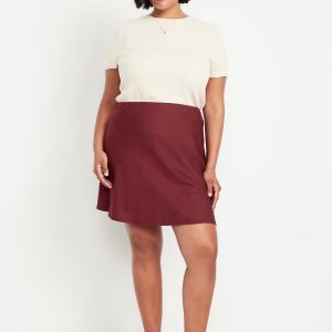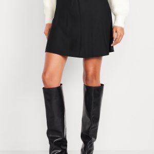 High-Waisted Crepe Flounce Mini Skirt: pull-on elastic waistband, darted back, #804480