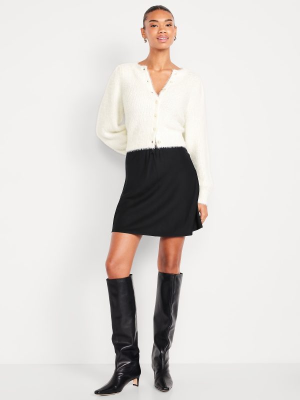 High-Waisted Crepe Flounce Mini Skirt: pull-on elastic waistband, darted back, #804480