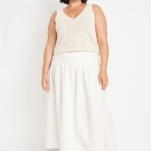 High-Waisted Crinkle Gauze Smocked Maxi Skirt: smocked high waistband, shirred detail, easy pull-on style, #766931