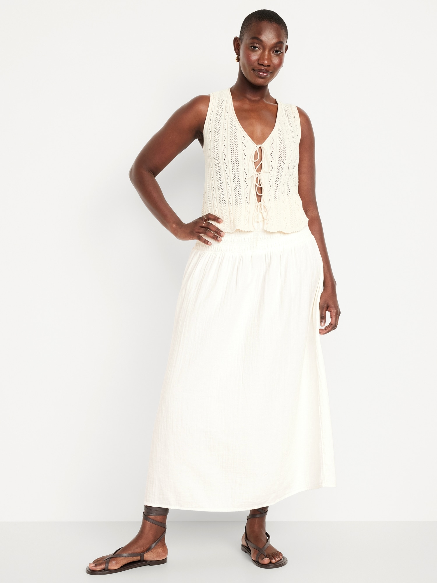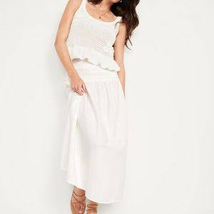 High-Waisted Crinkle Gauze Smocked Maxi Skirt