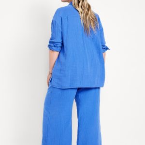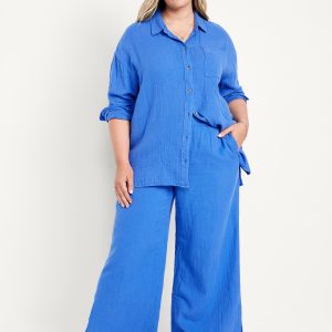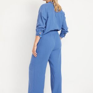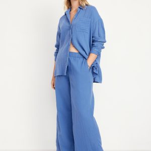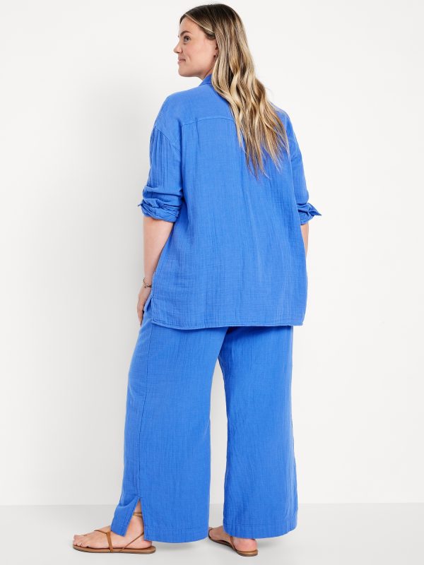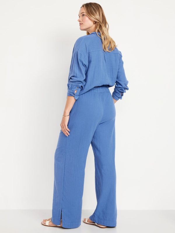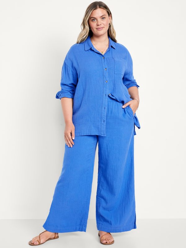 High-Waisted Crinkle Gauze Super Wide-Leg Pants
