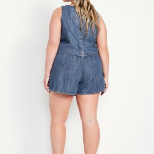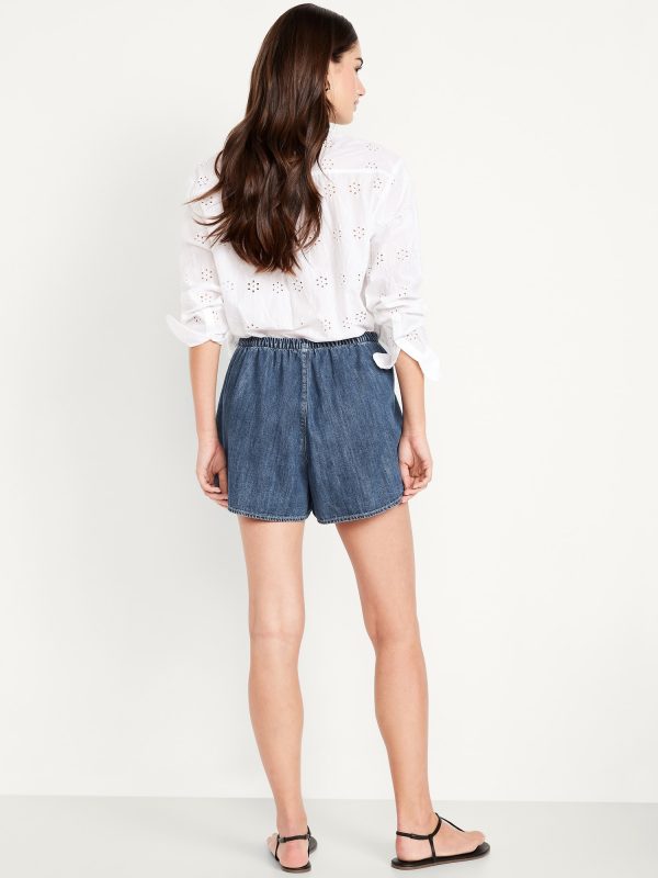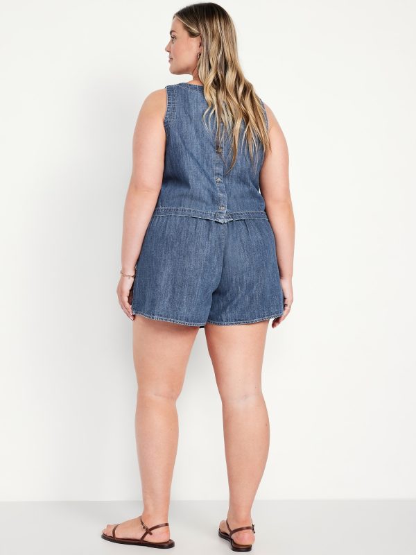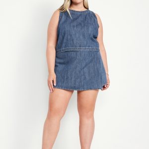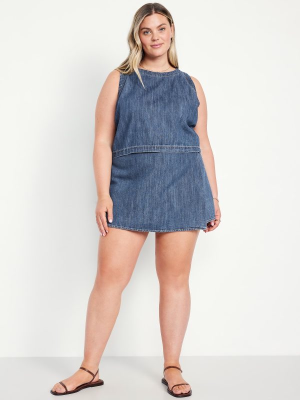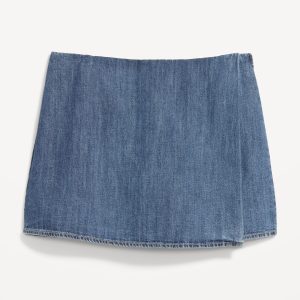 High-Waisted Faux-Wrap Jean Mini Skort