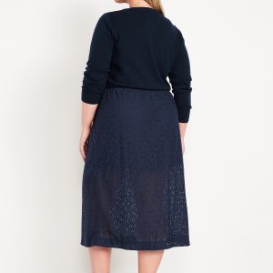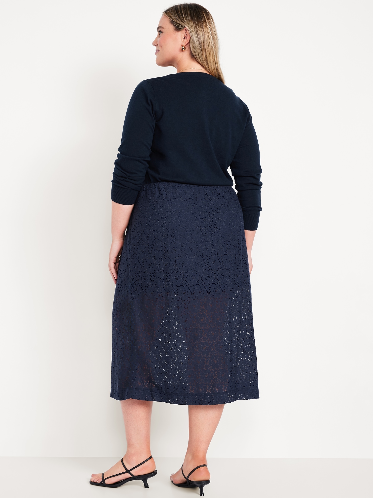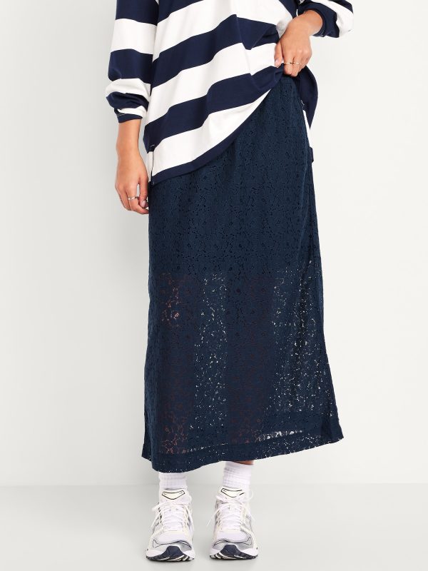 High-Waisted Lace Midi Skirt: elastic waistband, mini-length lining, easy pull-on style, #798241