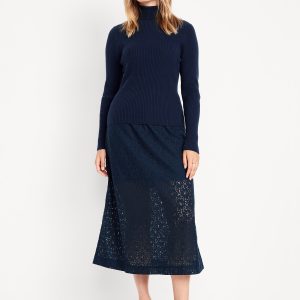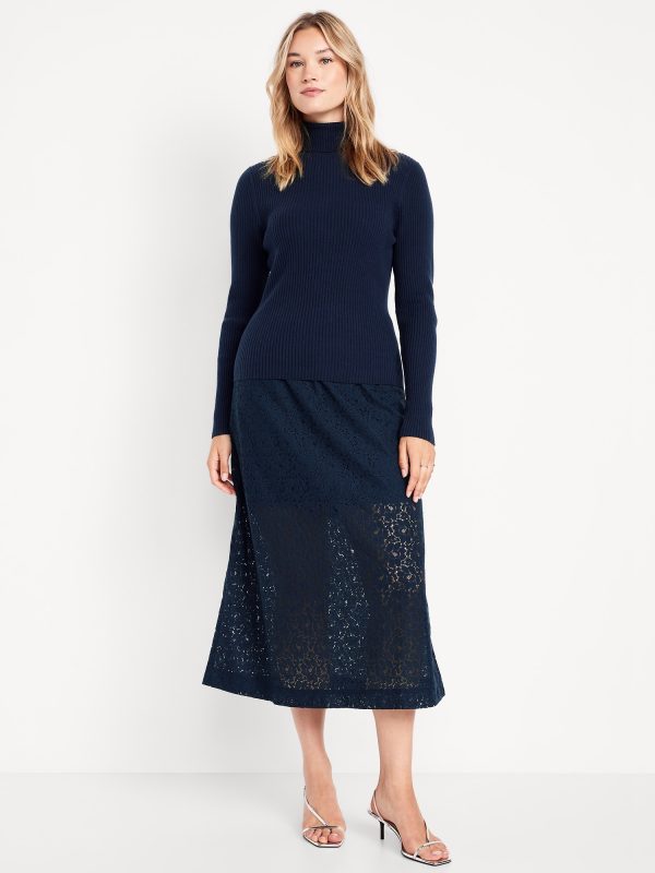 High-Waisted Lace Midi Skirt