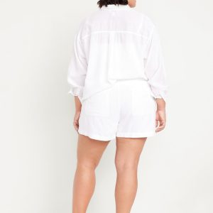 High-Waisted Linen-Blend Pull-On Shorts — 3.5-inch inseam