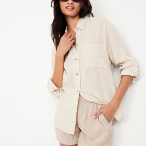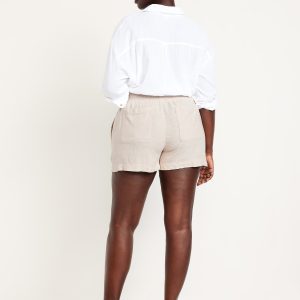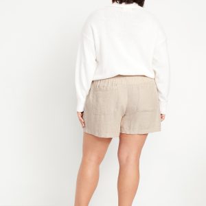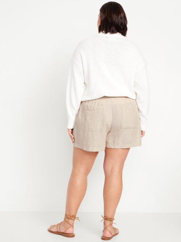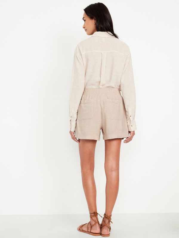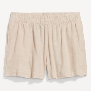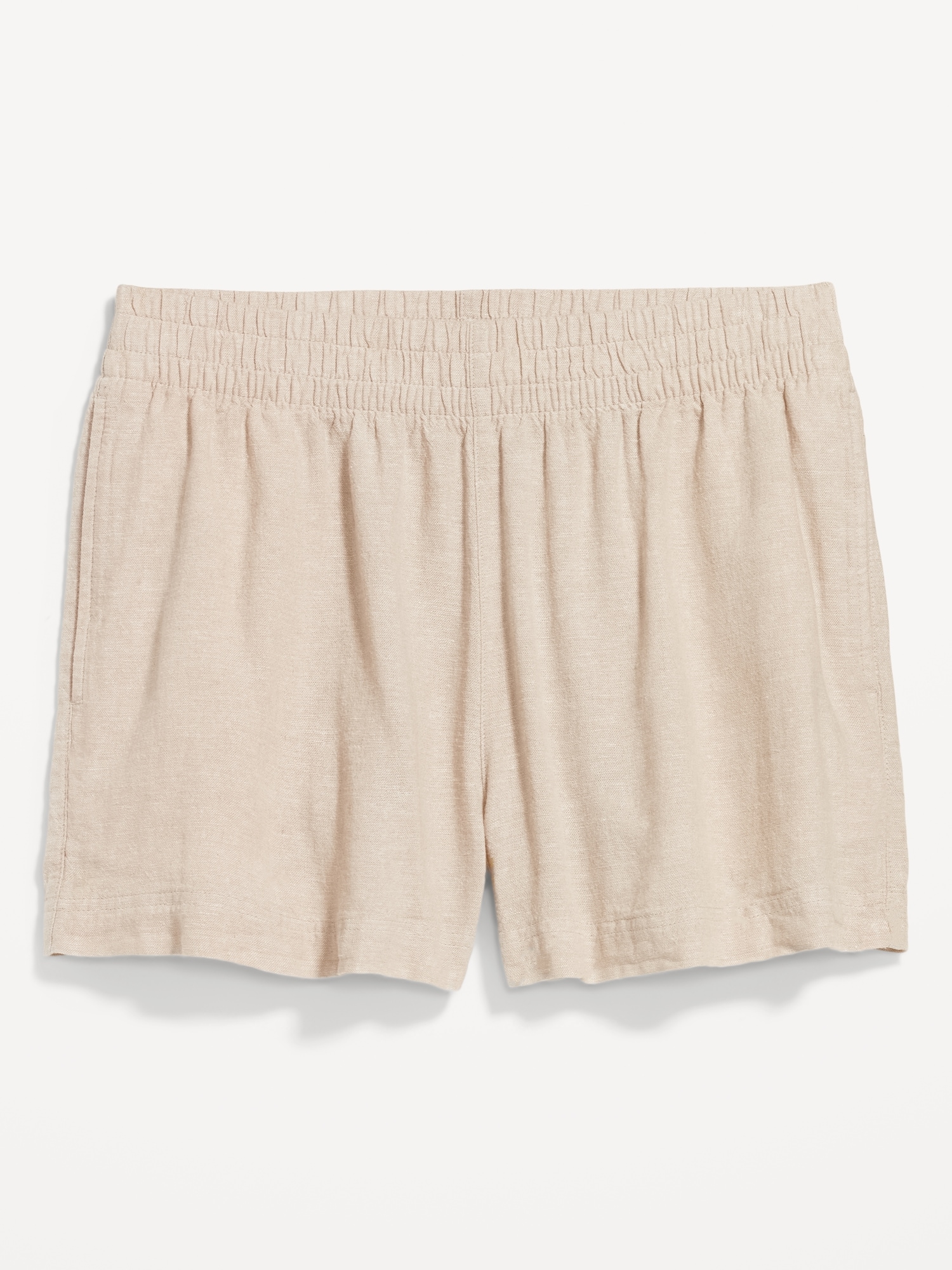 High-Waisted Linen-Blend Pull-On Shorts — 3.5-inch inseam