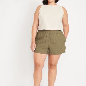 High-Waisted Linen-Blend Shorts — 3.5-inch inseam