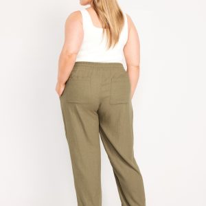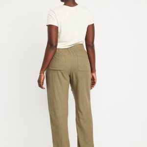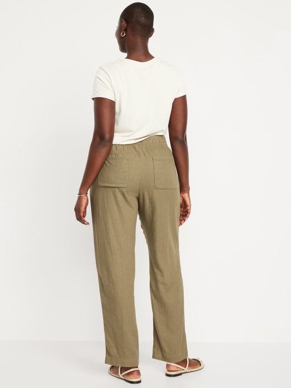 High-Waisted Linen-Blend Straight Ankle Pants: elasticized waistband, on-seam hip pockets, back patch pockets, straight leg, pull-on style, #683297