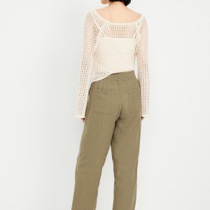 High-Waisted Linen-Blend Straight Ankle Pants