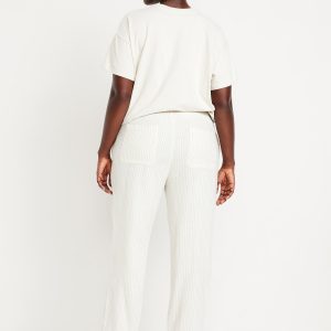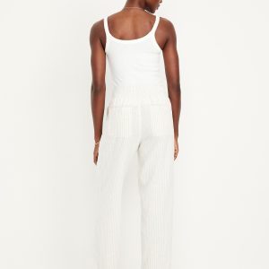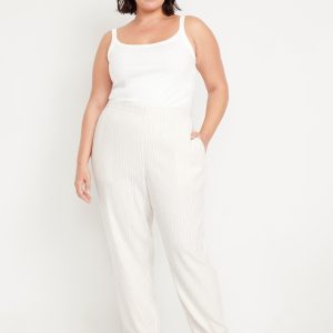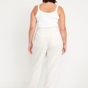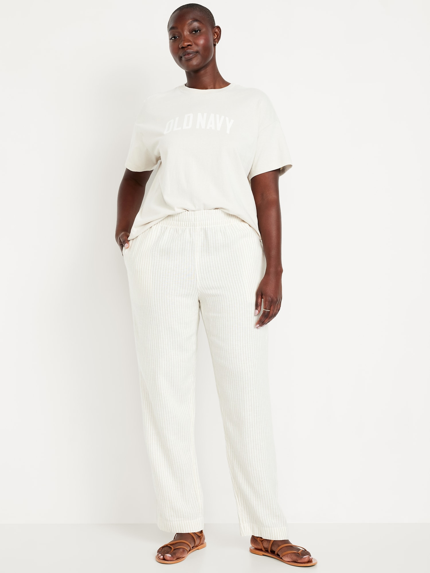 High-Waisted Linen-Blend Straight Ankle Pants: elasticized waistband, on-seam hip pockets, back patch pockets, straight leg, pull-on style, #683297