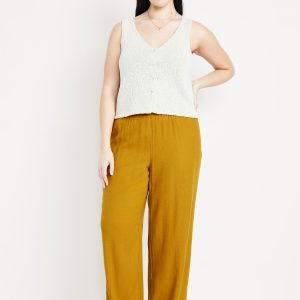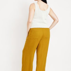 High-Waisted Linen-Blend Wide-Leg Pants: elastic-drawstring high waistband, on-seam hip pockets, super wide leg, easy pull-on style, online exclusive, #683345