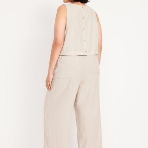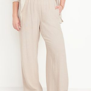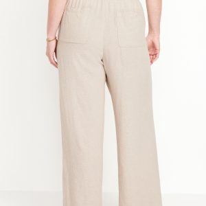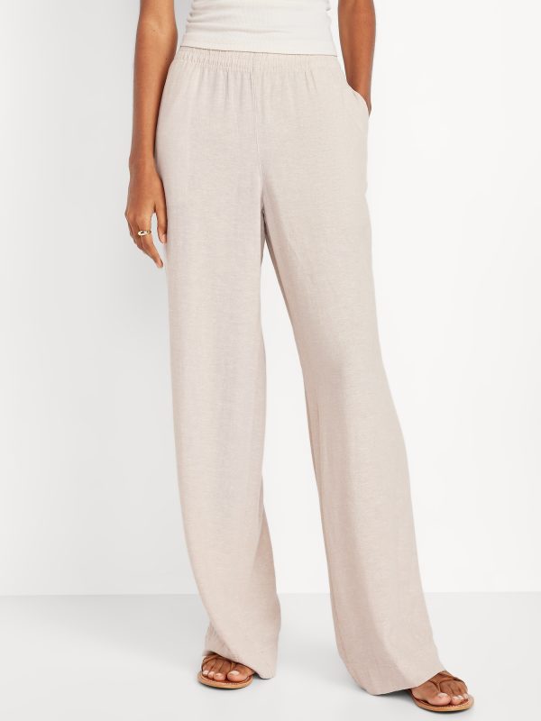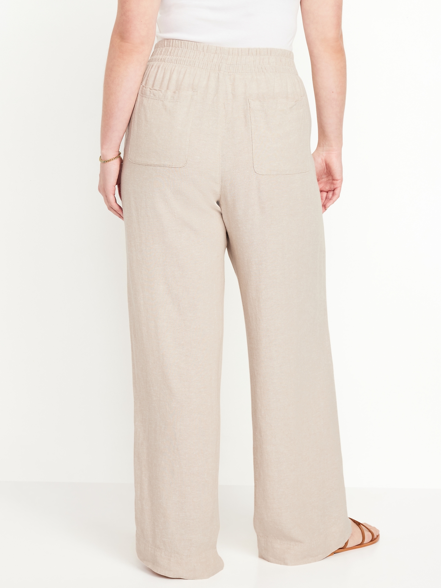 High-Waisted Linen-Blend Wide-Leg Pants: elastic-drawstring high waistband, on-seam hip pockets, super wide leg, easy pull-on style, online exclusive, #683345