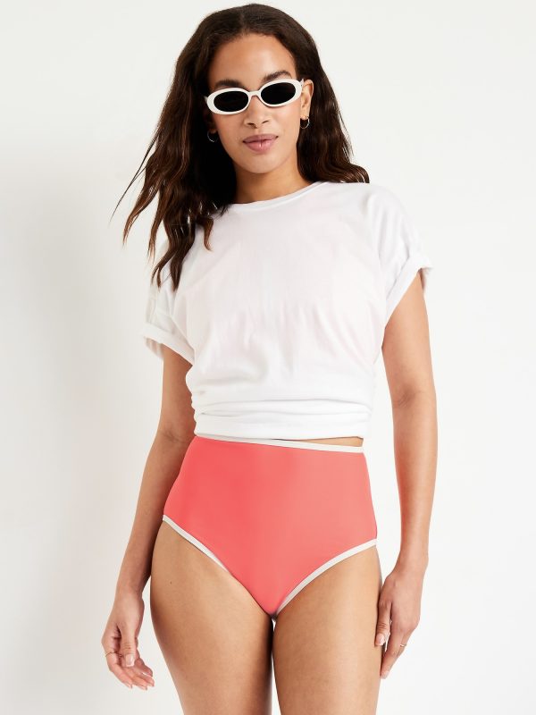 High-Waisted Matte Surf Bottoms: high waisted, elasticized leg openings, contrasting trim on select colors, #751320