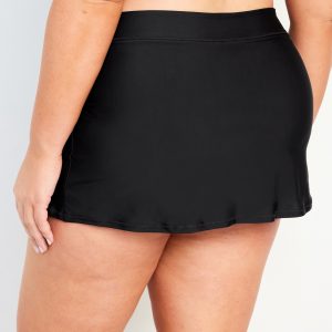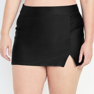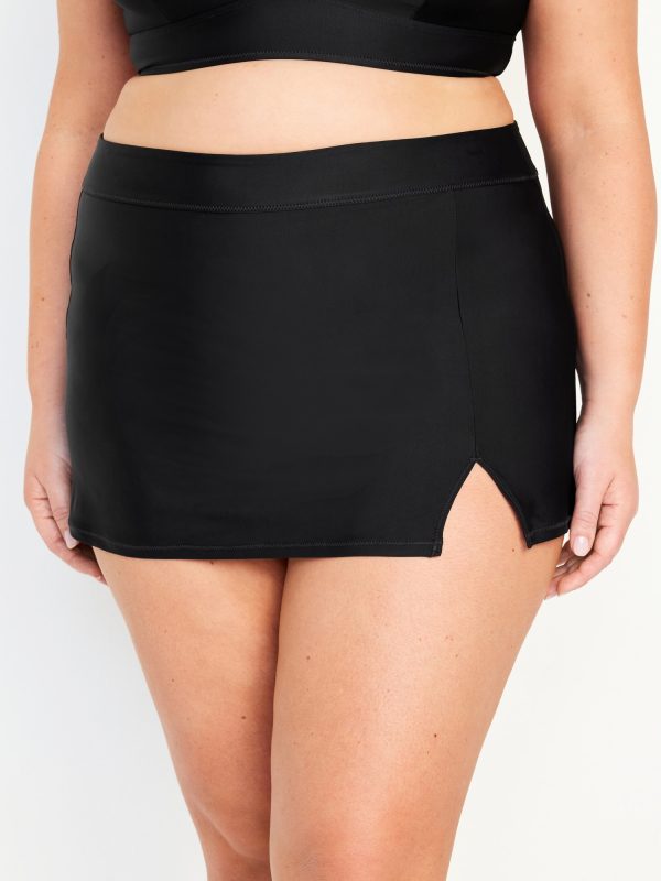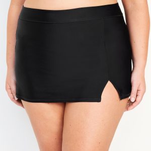 High-Waisted Matte Swim Skirt: elastic waist, vented front, built-in briefs, #864938