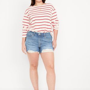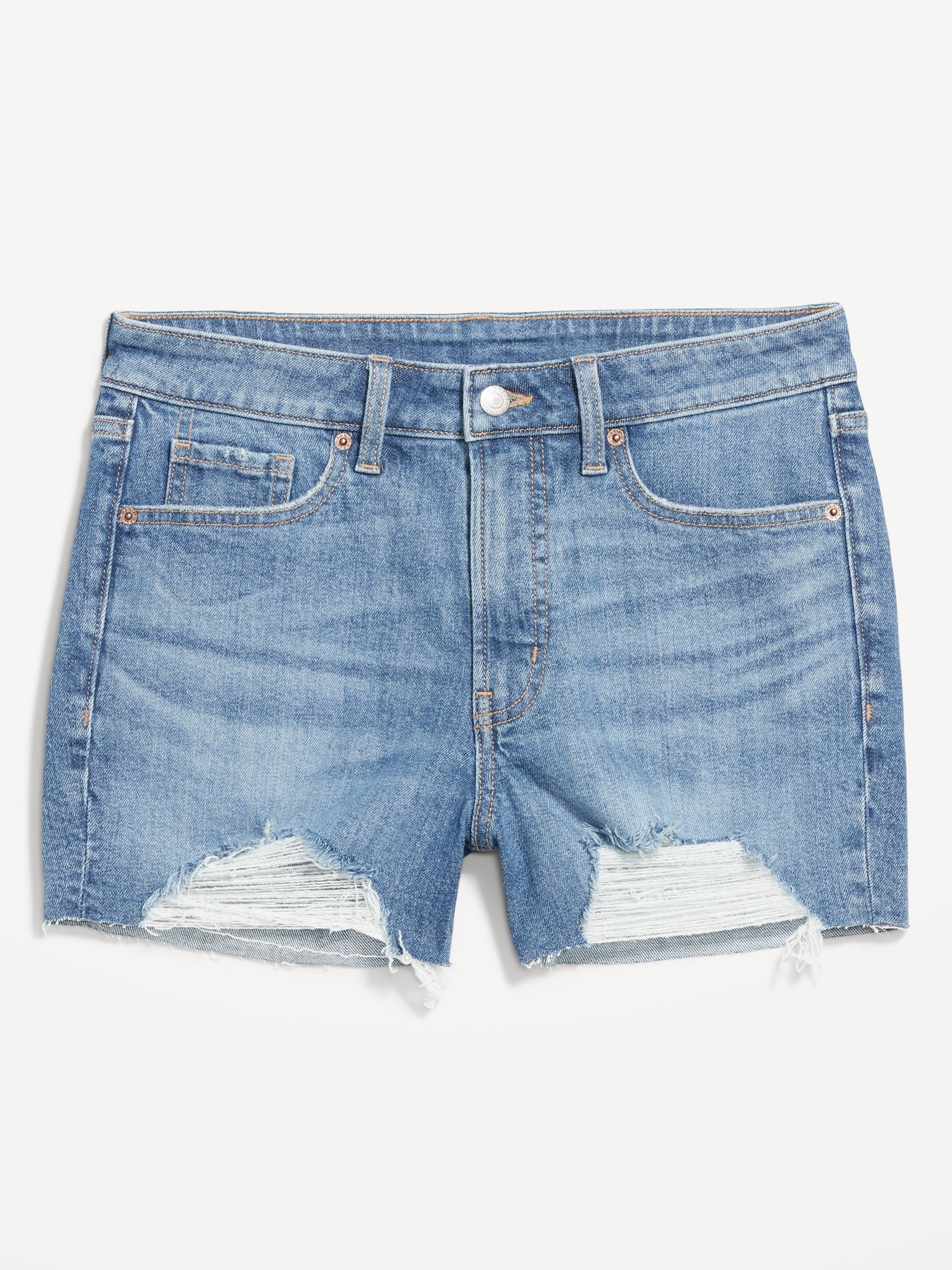 High-Waisted OG Jean Cut-Off Shorts — 3-inch inseam: button front, belt loops, zip front, front scoop pockets, back patch pockets, cutoff hem, #846719