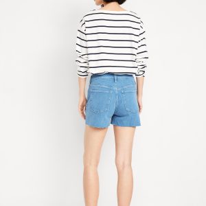 High-Waisted OG Jean Cut-Off Shorts — 3-inch inseam: button front, belt loops, zip front, front scoop pockets, back patch pockets, cutoff hem, #846719