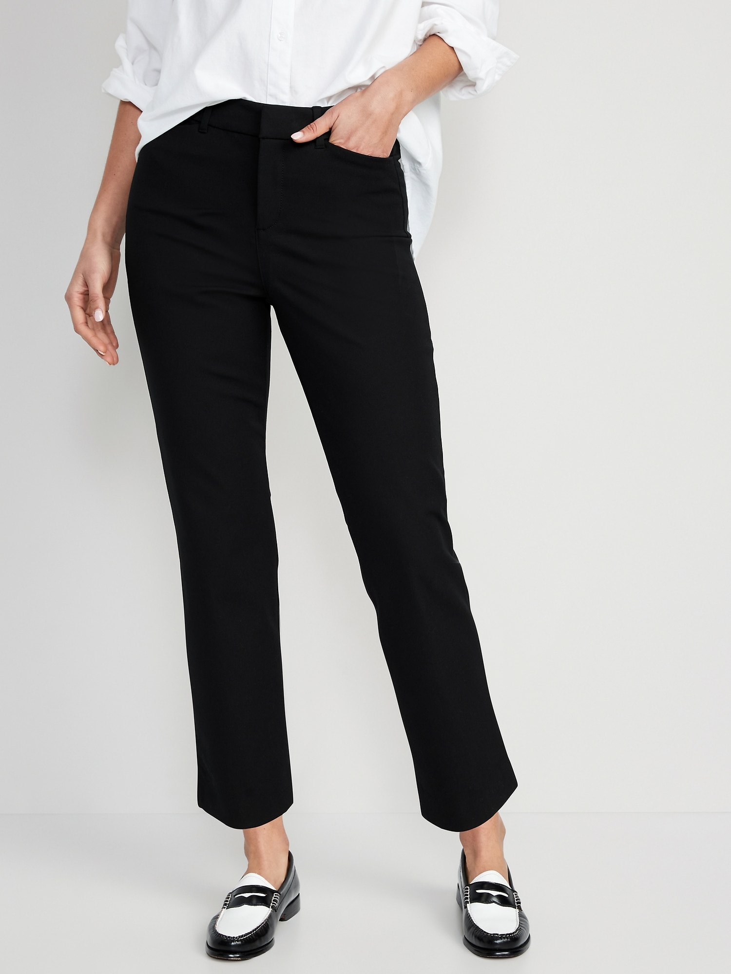 High-Waisted Pixie Straight Pants: The stretchy profesh pant you love.hook-and-bar closure, belt loops, interior button, zip fly, front pockets, faux-welt back pockets, online exclusive, available in maternity sizes, #629561