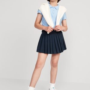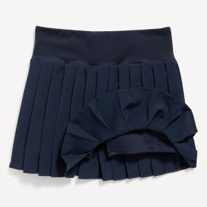 High-Waisted Pleated Performance Skort for Girls: built-in biker shorts, built-in shorts has stash pocket, elasticized waistband, flared pleated skirt, #865083