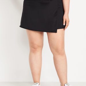 High-Waisted PowerSoft Faux-Wrap Skort: Featuring PowerSoft. Light compression meets a peachy-smooth, sweat-wicking fabric.pull-on waistband, faux-wrap front, built-in bike shorts, mini length, go-dry wicks moisture, breathable, #694169