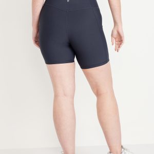 High-Waisted PowerSoft Pocket Biker Shorts — 6-inch inseam: Featuring PowerSoft. Light compression meets a peachy-smooth, sweat-wicking fabric.pull-on waist, side pocket fits your phone, go-dry wicks moisture, #662948