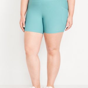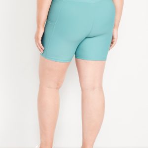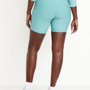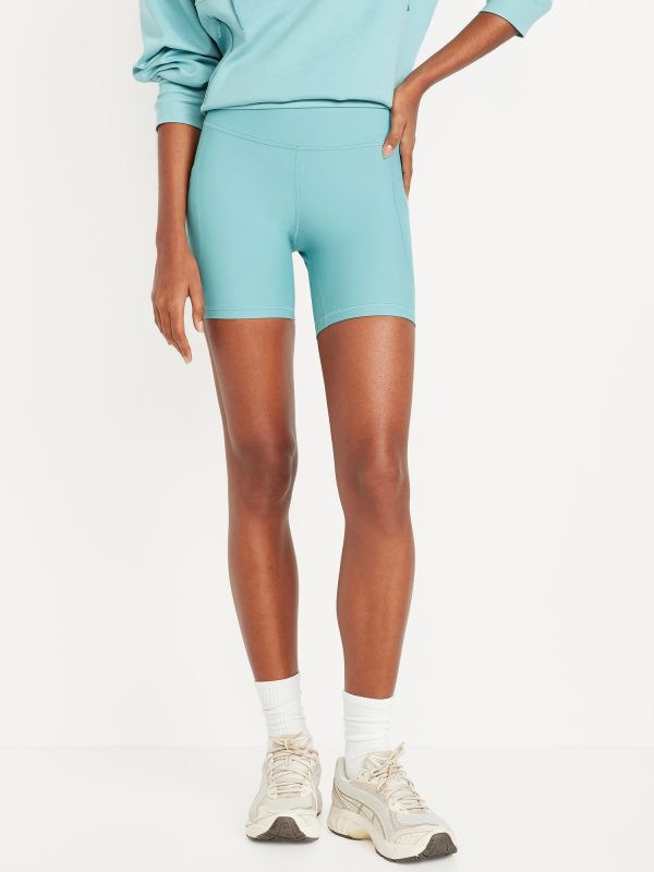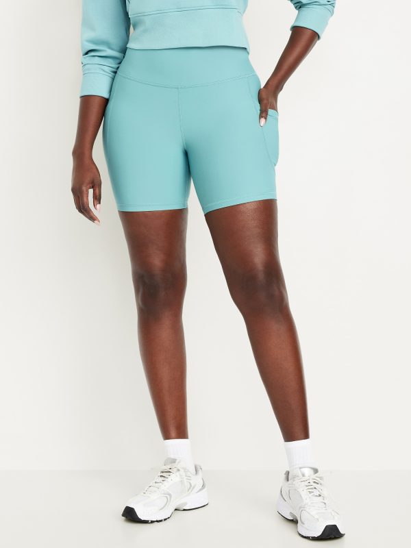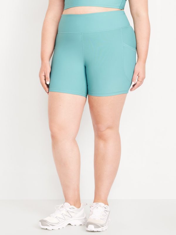 High-Waisted PowerSoft Pocket Biker Shorts — 6-inch inseam: Featuring PowerSoft. Light compression meets a peachy-smooth, sweat-wicking fabric.pull-on waist, side pocket fits your phone, go-dry wicks moisture, #662948