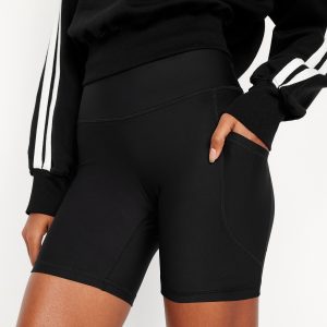 High-Waisted PowerSoft Pocket Biker Shorts — 6-inch inseam