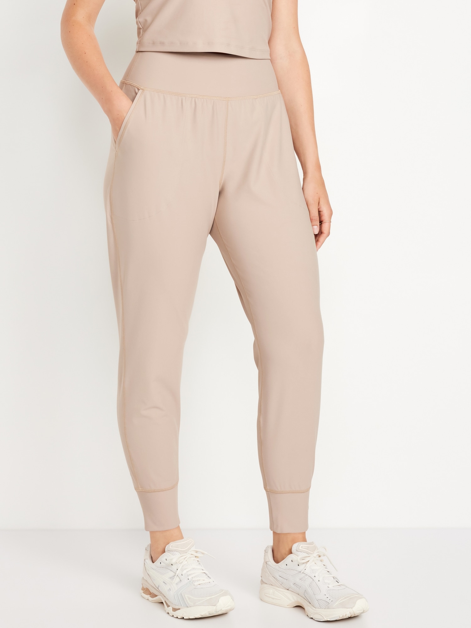 High-Waisted PowerSoft Pocket Joggers: Featuring PowerSoft. Light compression meets a peachy-smooth, sweat-wicking fabric.new waistband has more hold, less pinching, pockets fit your phone, banded cuffs, go-dry wicks moisture, breathable, available in maternity sizes, #479566