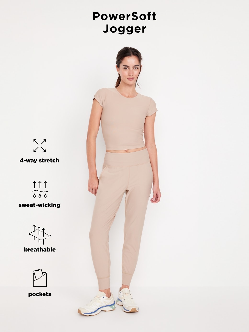 High-Waisted PowerSoft Pocket Joggers: Featuring PowerSoft. Light compression meets a peachy-smooth, sweat-wicking fabric.new waistband has more hold, less pinching, pockets fit your phone, banded cuffs, go-dry wicks moisture, breathable, available in maternity sizes, #479566