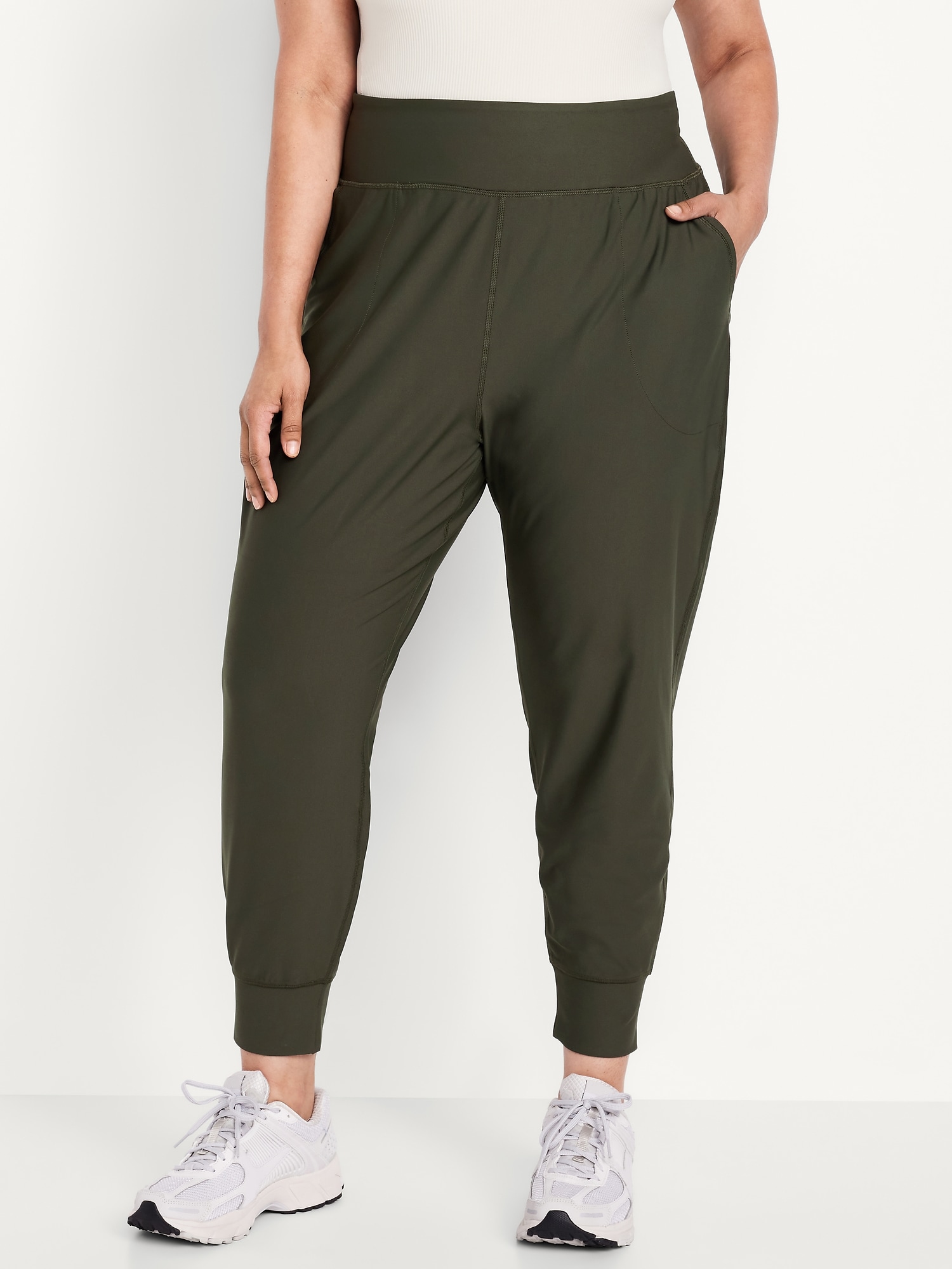 High-Waisted PowerSoft Pocket Joggers: Featuring PowerSoft. Light compression meets a peachy-smooth, sweat-wicking fabric.new waistband has more hold, less pinching, pockets fit your phone, banded cuffs, go-dry wicks moisture, breathable, available in maternity sizes, #479566