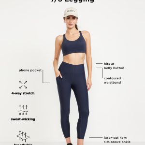 High-Waisted PowerSoft Sculpt 7/8 Pocket Leggings: Ft. a contoured waistband for extra snatched support.contoured waistband smooths and supports, side pockets, go-dry wicks moisture, breathable, #569829