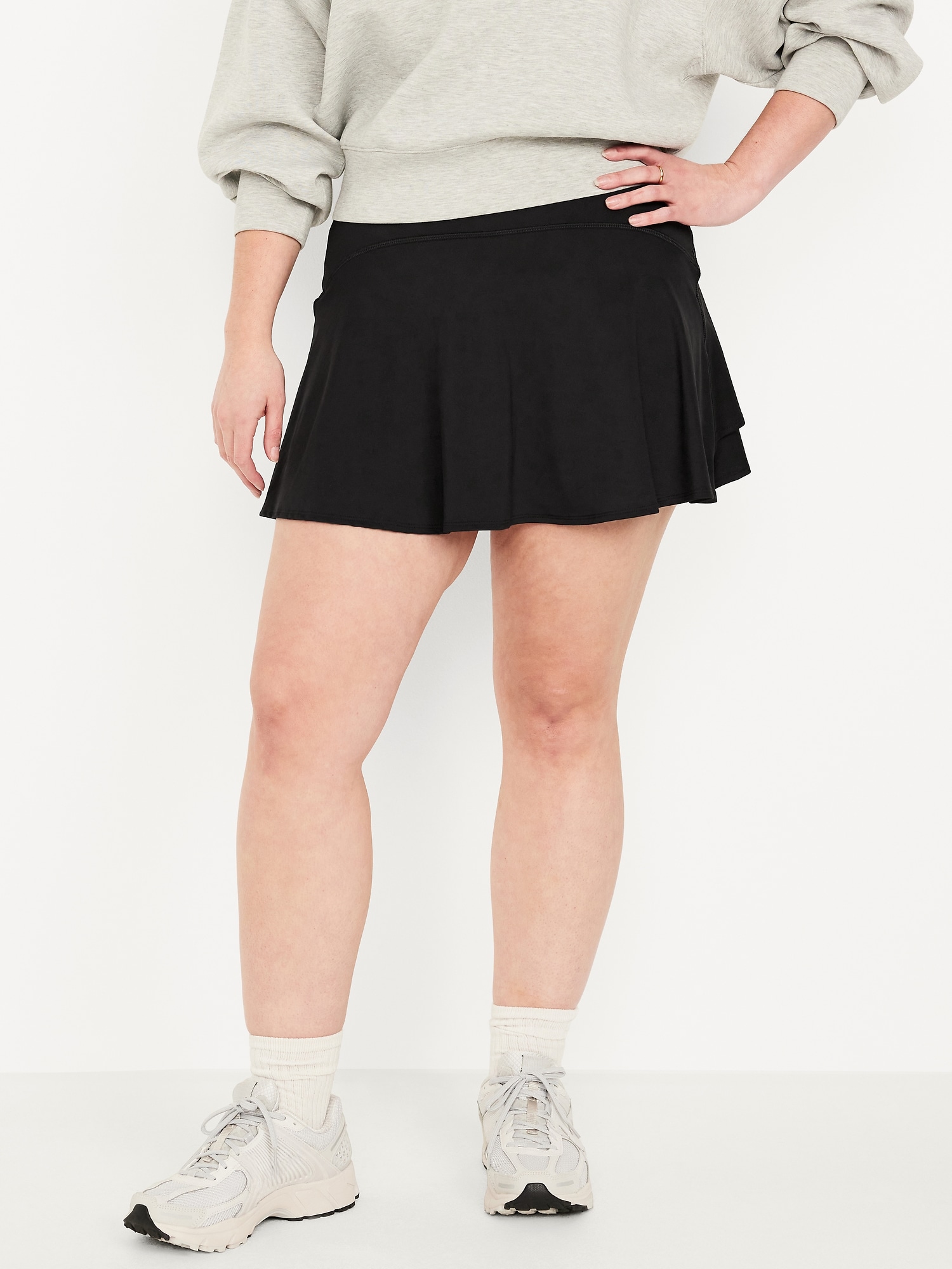 High-Waisted PowerSoft Skort: Featuring PowerSoft. Light compression meets a peachy-smooth, sweat-wicking fabric.elasticized waist, pocket fits your phone, built-in biker shorts, tiered ruffles at back, go-dry wicks moisture, #400173