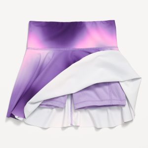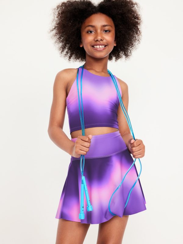 High-Waisted PowerSoft Skort for Girls: high-rise, elasticized waistband, reflective logo in back, mini-length skirt, built-in biker shorts, side pocket on shorts, easy pull-on style, #831549